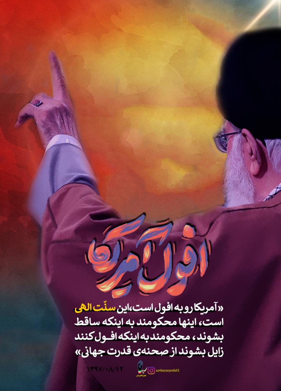 افول آمریکا«آمریکا رو به افول است. این وضعیّتی که آمریکاییها دچارش شدند، عامل بلندمدّت دارد؛ اینها در طول تاریخ وضعیّتی را به وجود آوردند که نتیجهاش همین است و به این آسانیها علاجشدنی نیست. این سنّت الهی است، اینها محکومند به اینکه ساقط بشوند، محکومند به اینکه افول کنند، زایل بشوند از صحنهی قدرت جهانی.» معبرجوان عاشورایی برچسبها: زوال, افول, مرگ بر امریکا, جوان عاشورایی