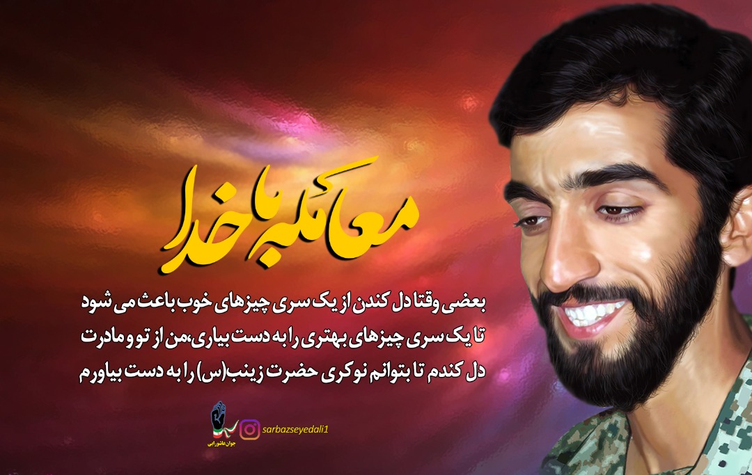 معامله با خدا بعضی وقتا دل کندن از یک سری چیزهای خوب باعث می شود تا یک سری چیزهای بهتری را به دست بیاری، من از تو و مادرت دل کندم! تا بتوانم نوکری حضرت زینب را به دست بیارم معبر جوان عاشورایی برچسبها: محسن حججی, عاشقی خدا, جوان عاشورایی