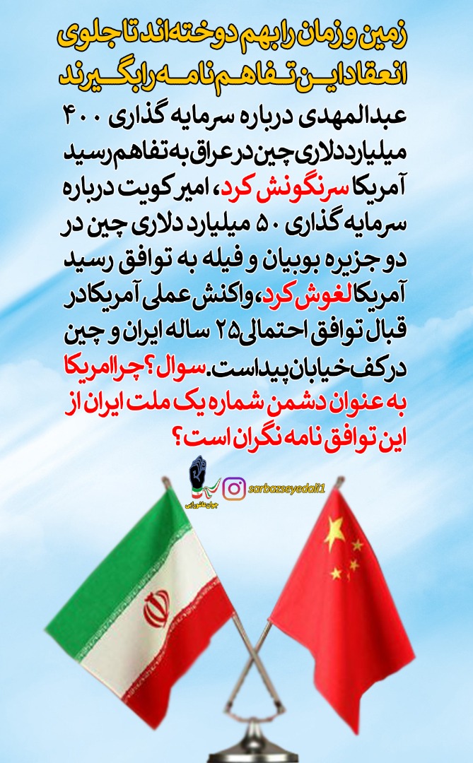 هنوز تفاهم نامه همکاری طولانی مدت ایران و چین به امضا نرسیده که آمریکایی ها و وابستگانشان، زمین و زمان را بهم دوختهاند تا جلوی انعقاد این تفاهم نامه را بگیرند!همین یک قلم ناراحتی آمریکایی ها کافی است تا همه متوجه شوند اهمیت و ارزش این تفاهم نامه تا چه حد است و عملا چه ضربه ای را به آمریکا و سیاست هایش بر علیه ایران، وارد می کند. حد اقل نتیجه این تفاهم نامه، شکسته شدن تحریم های آمریکا بر علیه ایران می باشد.متاسفانه با ابزار رسانه ای که در اختیار دشمن هست بخشی از ذهن جوانان ما را با اراجیف و توهم پر کرده اند که با انعقاد این قرار داد مثلا جزیره کیش را به چین ها واگذار خواهیم کرد"اصلا هم اینجوری نیست"امریکا ومتحدانش تا به حال از ملت ما متحمل شکست های بسیاری شده اند با شفاف سازی و اغناء کردن جوانان، ان شالله این بار هم خواب دشمن را آشفته خواهیم کرد.سوال کنید چرا امریکا از این قرارداد ناراحت است؟چرا رسانه ای مثل بی بی سی انگلیس و ایران اینترنشال سعودی خودشان را به در و دیوار میزند تا این توافق شکل نگیرد؟ معبرجوان عاشورایی برچسبها: توافق ایران و چین, انعقاد قرارداد, ایران چین, جوان عاشورایی