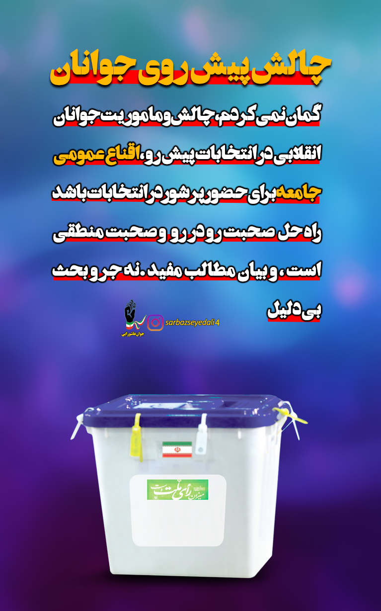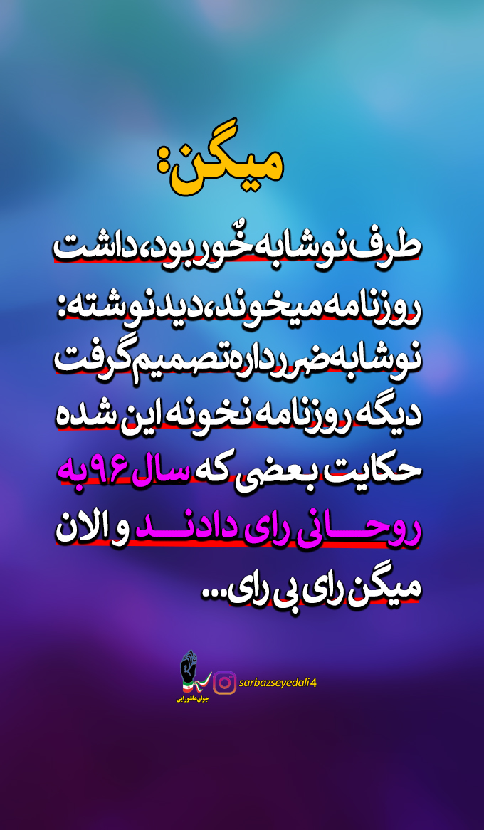 یکی از مدعیان اصلاحات و عضو مرکزیت حزب منحل شده مشارکت در مصاحبه با نشریه «صدا» میگوید: «مهمترین هدف اصلاحطلبان، تعمیق شکاف در حاکمیت است.حالا چگونه میخواهند این شکاف را ایجاد کنند"با ایجاد انشقاق بین کاندیدهای جبهه انقلاب"به او میگویند بمان رای داری"به دیگری میگویند تو شانس برنده شدن داری"این برادران که از نیروهای خدوم انقلابند باید بدانند زمان آزمون و خطا نیست. داستان دو زن که ادعای مادری کودکی را داشتند و بر ادعای خود پای فشرده و دست بر نمیداشتند و هنگامی که پند و اندرز فراوان امیرالمؤمنین کارساز نیفتاد و هر دو را در ادعای خویش پابرجا دید،وانمود کرد که قصد دارد کودک را با شمشیر،دو نیمه کند و هر نیمه را به یکی از دو مدعی بسپارد!در آن حال،آن که مادر واقعی بود و کودک را به ژرفای دل دوست داشت و دلبند خود میدانست، دست از ادعا کشید و امیرالمؤمنین(ع) کودک را به او سپرد. ما جوانان به کلام رهبرمان که فرمود:حَسْبُنَا اللَّهُ وَ نِعْمَ الْوَکیلُ ،کارمان را انجام میدهیم"شما خواص هستید که باید پا روی نفستان بگذارید و اجماع اصلی را انجام بدهید. . @sarbazseyedali4 معبرجوان عاشورایی برچسبها: انتخابات, رئیسی, جلیلی, جوان عاشورایی