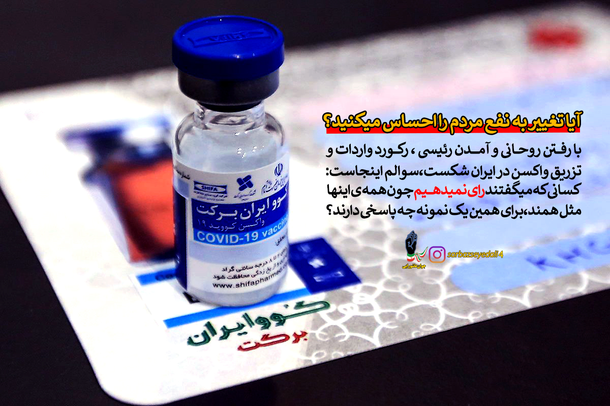 آنچه که عیان است چه حاجت به بیان است،آنچه که امروز در کشور میبینیم تغییر به نفع مردم در حال انجام هست،ابهام اینجاست می شود کار کرد"ولی نخواستند برای مردم تلاشی انجام دهند"وارادات واکسن را گره زده بودند به اف ای تی اف و مسائل حاشیه ای "با آمدن آقای رئیسی این روند وارادات با قدرت انجام شد"و همچنین رکورد تزریق واکسن در کل جهان را برای ایران صورت دادند"سوالم اینجاست:آنهایی که میگفتند رای نمیدهم چون همه مثل هم هستند"چه پاسخی دارند بدهند؟