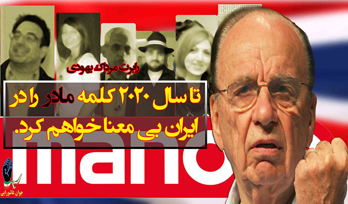 رابرت مرداک یهودی که در سخنی در اور گفتند که من تا سال 2020 کلمه مادر را در ایران بی معنا خواهم کرد "این شخص از مدیرهای شبکه فارسی وان و فارسی 2 تا شبکه من و تو که با ترویج هم جنس بازی و خیانت به همسر و همسر به شهور ترویج زنا رفتار جنسی زننده بارداری قبل از ازدواج و روابط نامشروع از کارنامه شبکه فارسی وان و من تو است "سوال ایا این رابرت مرداک عاشق ما ایرانی هاست که برایمان شبکه درست کرده ان هم یک شبکه نه بیش از 10 شبکه امروز بیش از 300 شبکه بر علیه نظام ما فعالیت می کنند واکنش ما در قبال این مسئله چیست ؟ایا درد داریم که نکند روز مرداک کلمه مادر را از ما بگیر و ان مهر مادری دیگر معنای نداشته باشد ایا ترس نداریم که روزی شبکه های بی گانه ذهن قلب جوانان ایران را تسسخیر کند وا و را از حقیققت اسلام ناب دور کند :ترس ما و درد ما این باشد که برای مقابله با این جنگ تام عیار فرهنگی چاره بی اندیشیم بیکار ننشینیم این راه حل تمام این جنگ است .