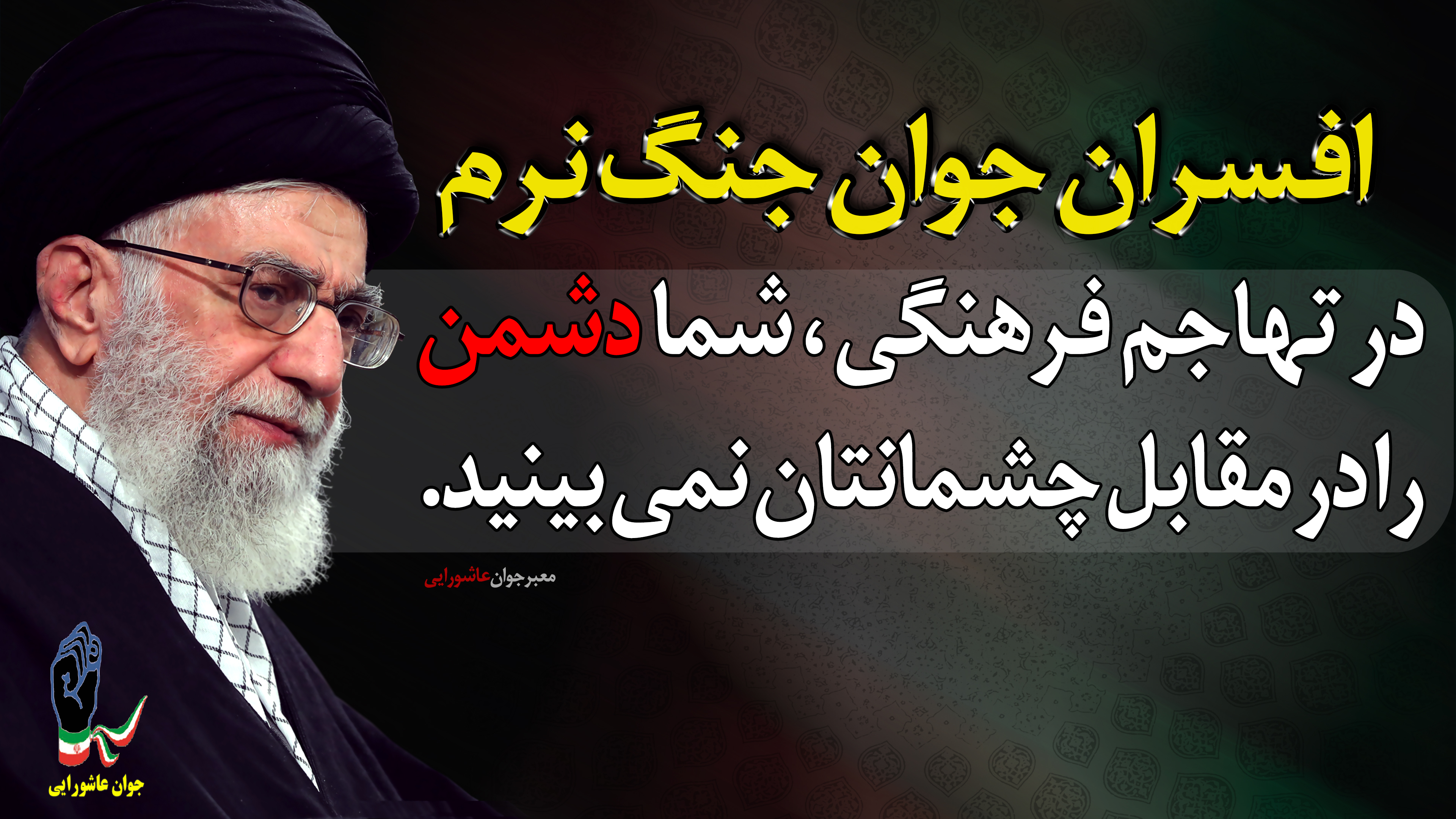 این جنگ جدیست این جنگ تمام عیار را باید مدیریت کنیم :همان رو زهایی که امام ره حکم جهاد دادند که بروید این دشمن را از خاک مان بیرون کنید وخرمشهر را از وجود نحص انها ازاد کنید "امروز هم امام حی حکم جهاد داده است جهاد یعنی نیاز به اجازه پدر مادر هم نداری شما افسرانن جوان جنگ نرم هستید و در دیدار با خانم حسینی کتاب دا اعلام جنگ همه جانبه کردند "باید این جنگ را مدیریت کنیم تا راه شهدا ادمه داشته باشد تا پرچم اسلام زا در انتهای افق بر زمین بکوبیم تا متجاوزین را سر کوب کنیم "برای مقابله با ماهواره که عامل اصلی بد حجابی و بی فرهنگیست با قاطعیت تمام مبارزه کنید و براین جنگ برنامه ریزی کنیم تا به هدف اصلی خود برسیم "